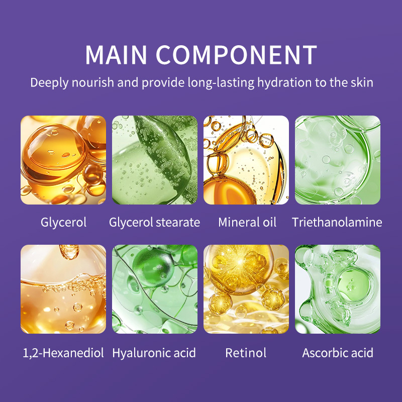 Vitamin C, Hyaluronic Acid, Retinol, Glycerol, Mineral OilRecurso :